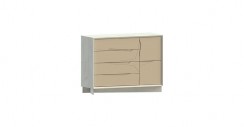 Комод в стиле модерн, не лишенный оригинальности в исполнении фасада. Закрытые ящики, отсутствие декоративных элементов (включая ручки) и стеклянных вставок гарантируют простоту в уходе за мебелью. Куб защитит ваши предметы от пыли, и сам потребует лишь поверхностной влажной уборки.