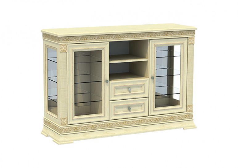 Комод как произведение искусства. Этот предмет мебели не только поможет вам сохранить предметы в закрытых ящичках, но и продемонстрировать их в лучшем свете благодаря стеклянным дверцам и полкам. Комод Патриция создан для торжественного интерьера, в котором главное – красота и эстетика.