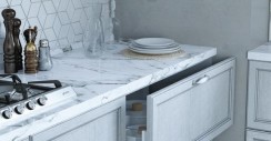 Кухонный гарнитур «Леон» - хорошее решение для любителей пространства. Невысокие нижние ящики, отсутствие декоративных элементов, вызывающих ощущение загроможденности, светлые тона, возможность разместить встроенную технику, – все это позволит «выкроить» на вашей кухне квадратные метры свободной площади.