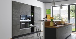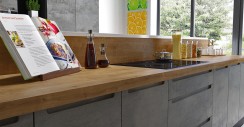 Холодность кухонного гарнитура в стиле хай-тек разбавлена деревянными столешницами, что делает кухню «Родос» более уютной, при этом сохраняя ее лаконичность.